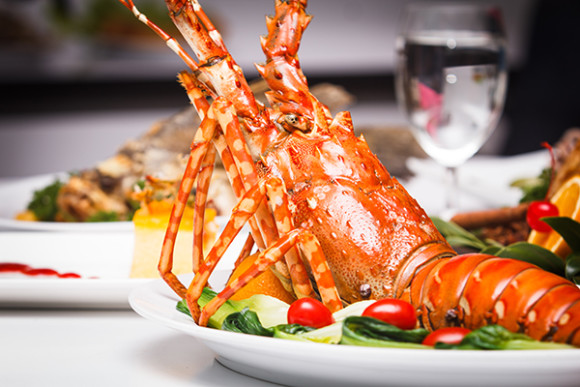 Finition et présentation : disposer les homards sur une planche et les couper en deux dans le sens de la longueur, retirer la petite poche caillouteuse située en haut de la tête, casser les pinces, arroser les homards du jus de cuisson, dresser dans un plat et servir avec le beurre blanc.